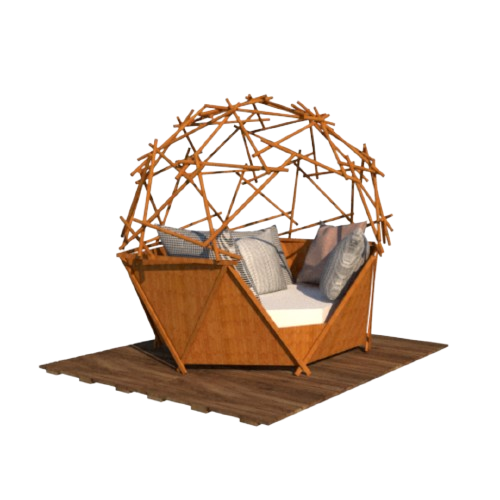 Estructura modular ligera que ofrece un agradable espacio de estar con diversas funciones.