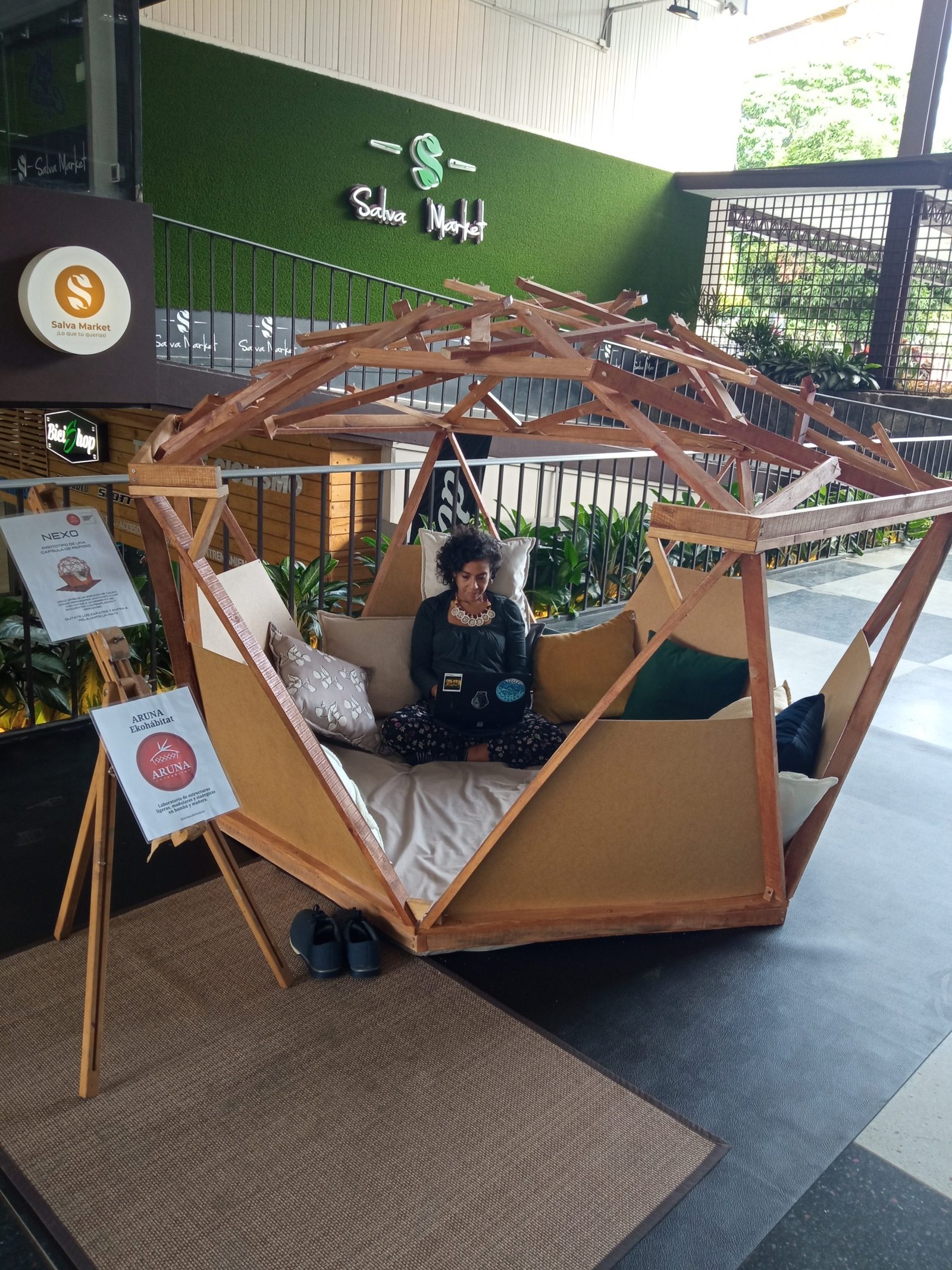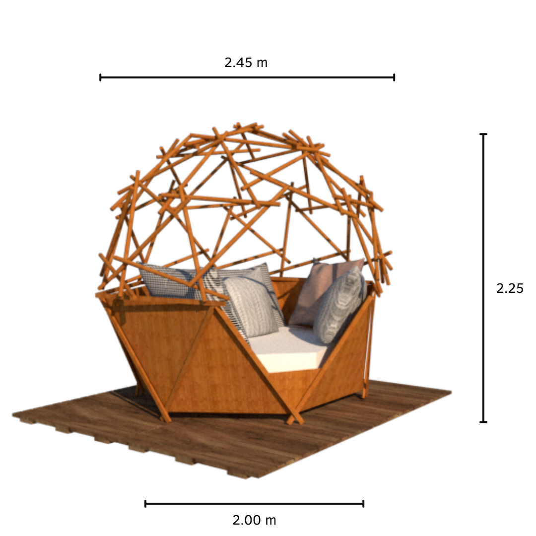 Nuestro confortable rincón de descanso, esta diseñada para ofrecer un espacio de relajación individual, a la vez que un ambiente cómo de interacción para grupos pequeños. Fabricada con madera, se reconoce por su carácter portátil y desmontable, lo que la convierte en la solución ideal para quienes buscan espacios confortables de fácil reubicación.